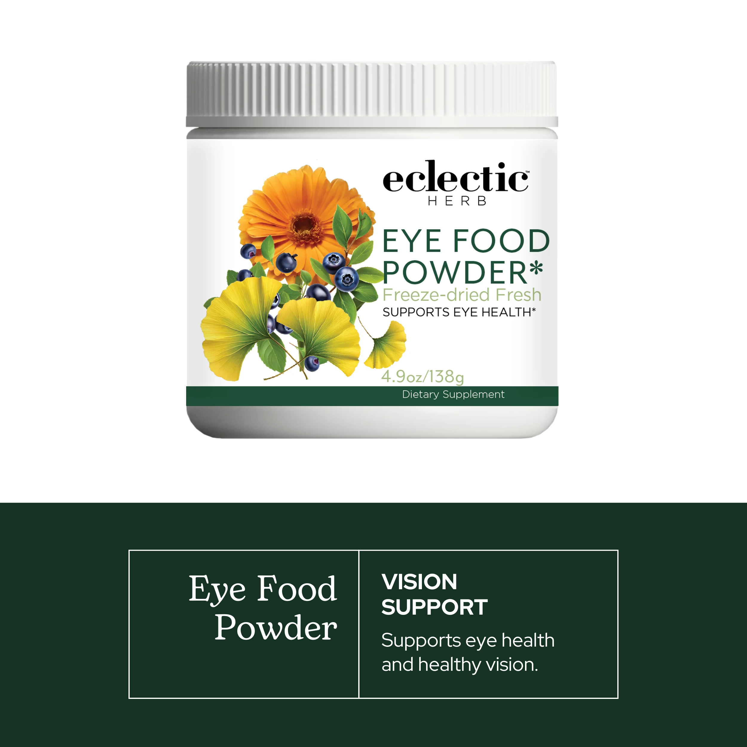 A blend of fresh freeze-dried eye-health supportive food formulated by a naturopathic physician*. Contains freeze-dried bilberries, sea buckthorn juice, and ginkgo leaves for vision support.* Freeze-drying is the best method of maintaining the activity and phytochemicals of the fresh plants.
