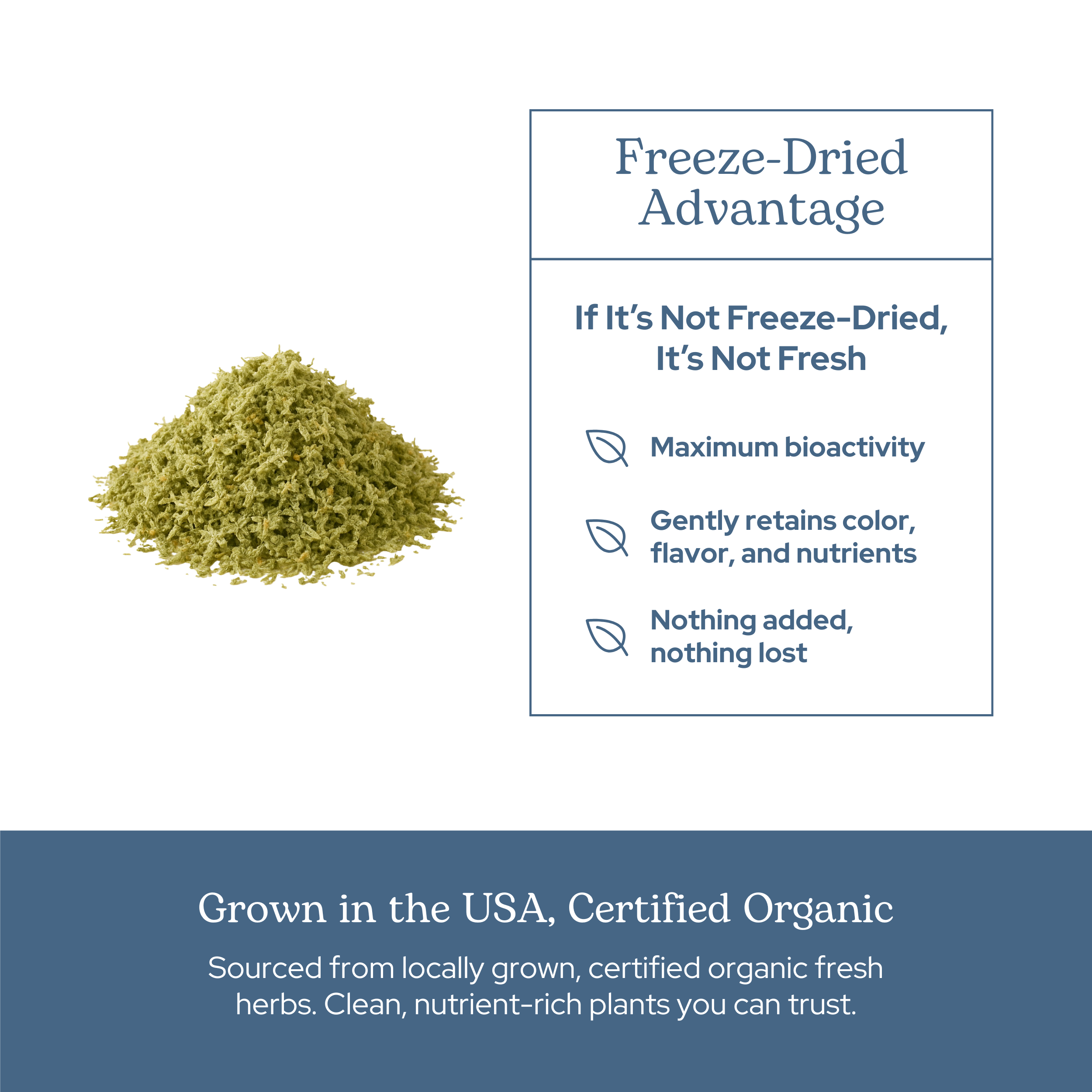 A highly concentrated formula created by a naturopathic physician. No harsh processing, only the natural processes of juicing and decocting, and fresh freeze-drying were used to make this product. No fillers, no standardized extracts, and no preservatives. Absolutely nothing artificial.