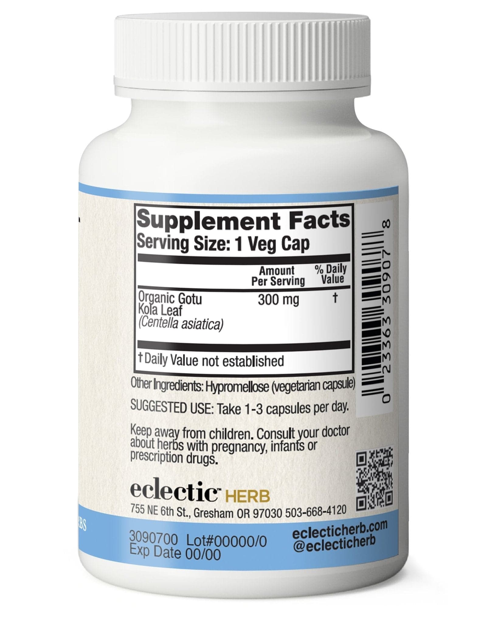 - Whole gotu kola leaves are harvested at peak potency and minimally processed.