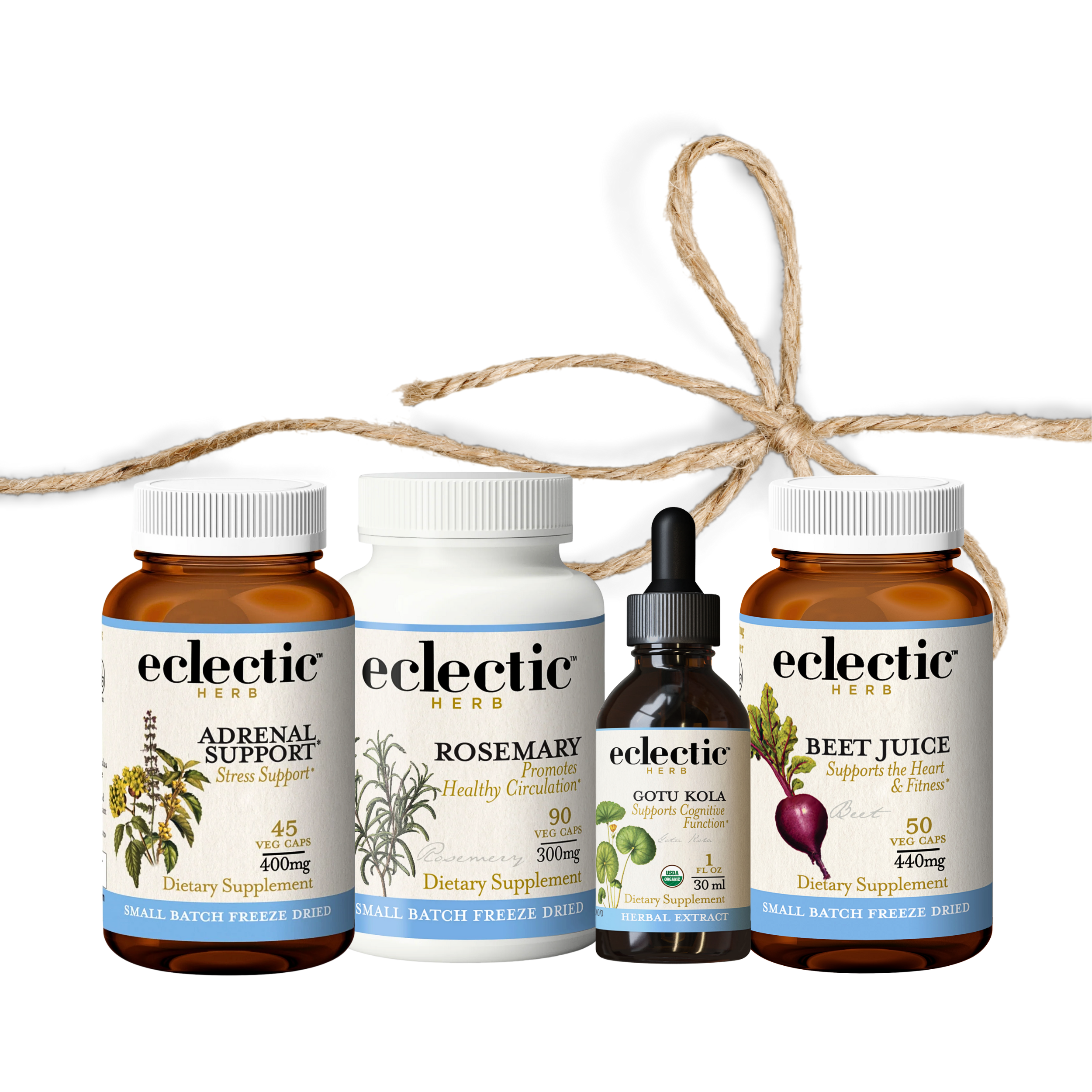 Bundle Includes: Adrenal Support Capsules (45 CT | 400 mg), Rosemary Capsules (90 CT | 300 mg), Beet Juice Capsules (50 CT | 440 mg), Gotu Kola Herbal Extract (1 fl oz | 30 ml).