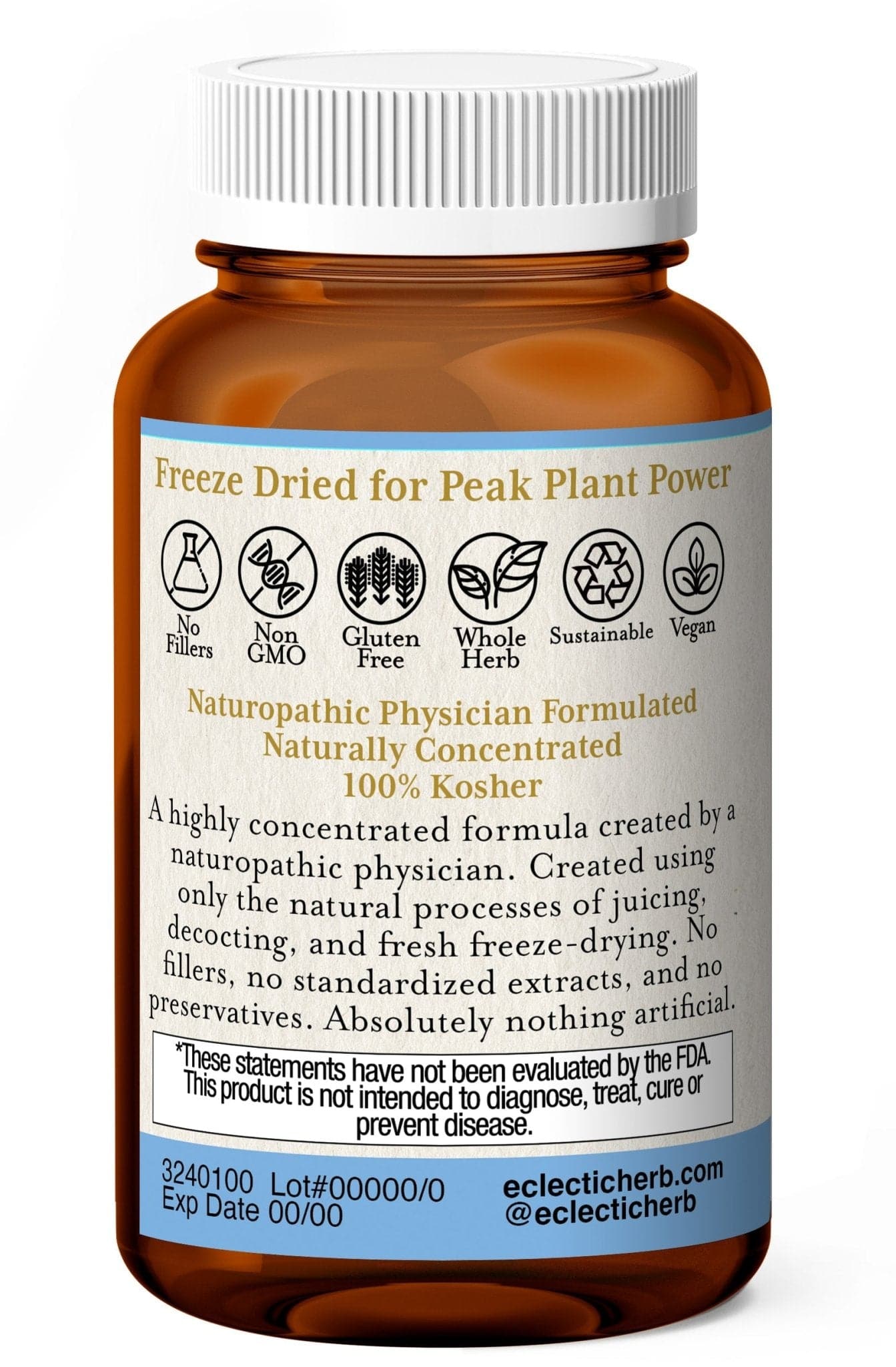 A highly concentrated formula created by a naturopathic physician. No harsh processing, only the natural processes of juicing and decocting, and fresh freeze-drying were used to make this product. No fillers, no standardized extracts, and no preservatives. Absolutely nothing artificial.