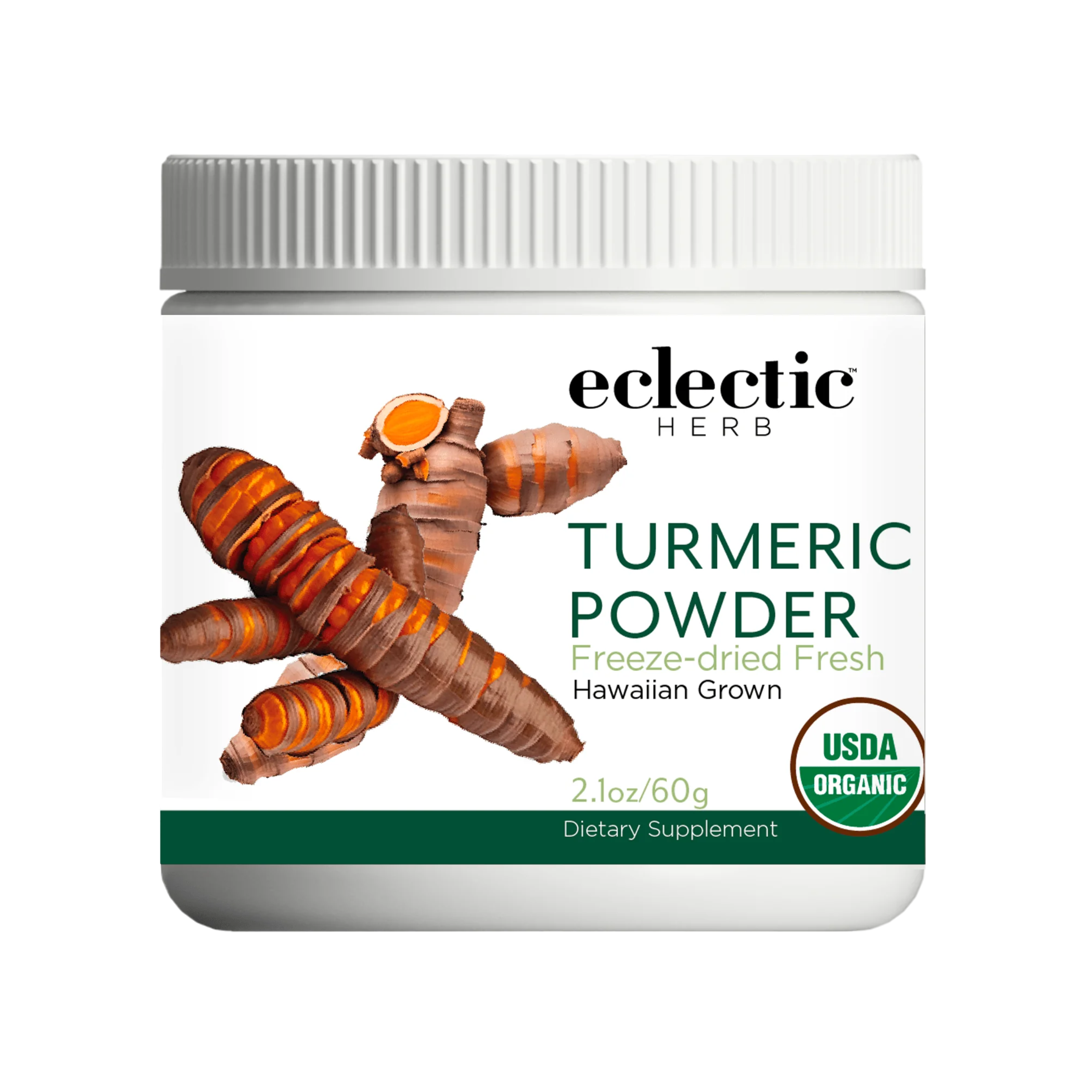 Ingredients: Raw, organic, freeze-dried turmeric rhizome.