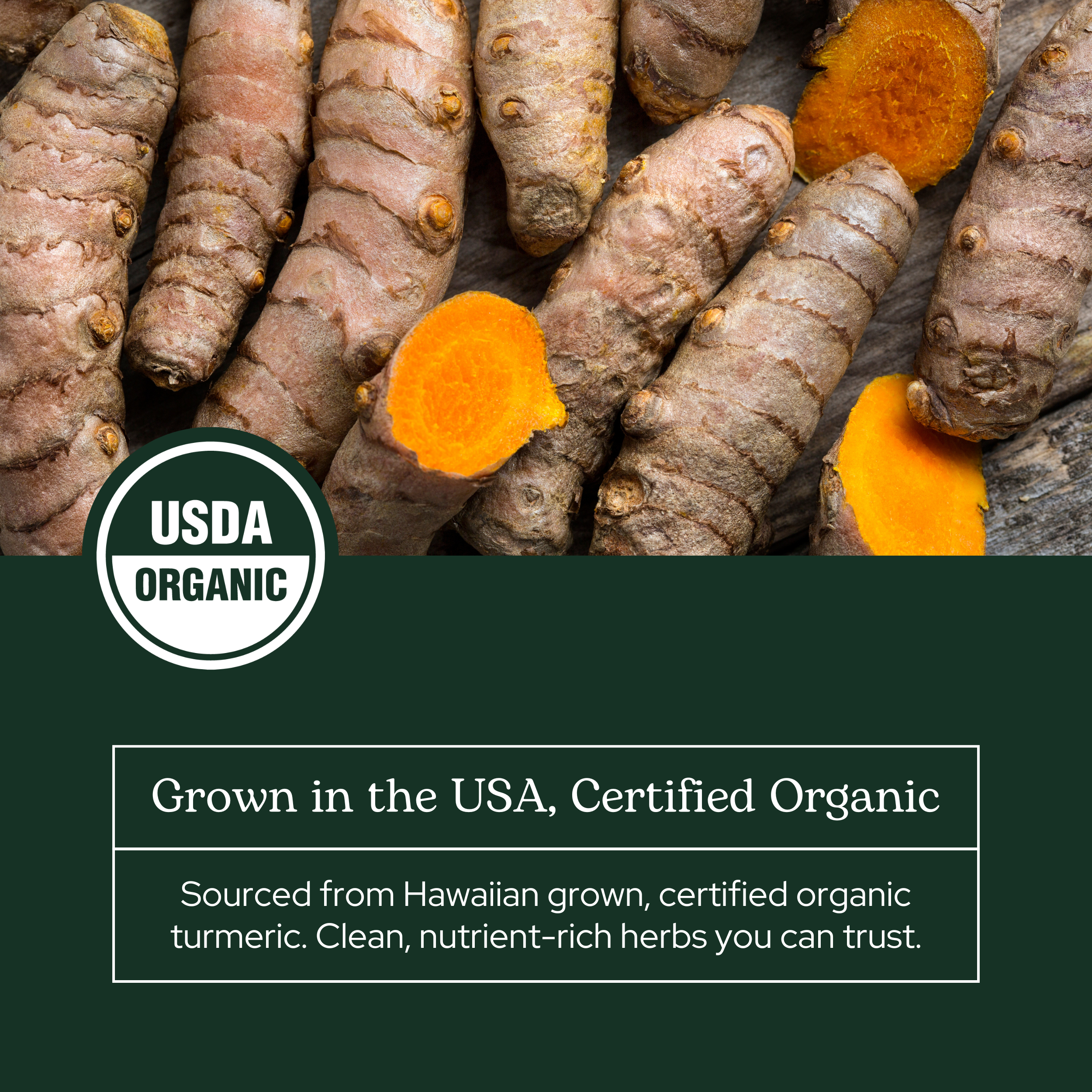 Certified US-grown organic Turmeric synergistically blended with Certified organic herbs to support a healthy stress response*