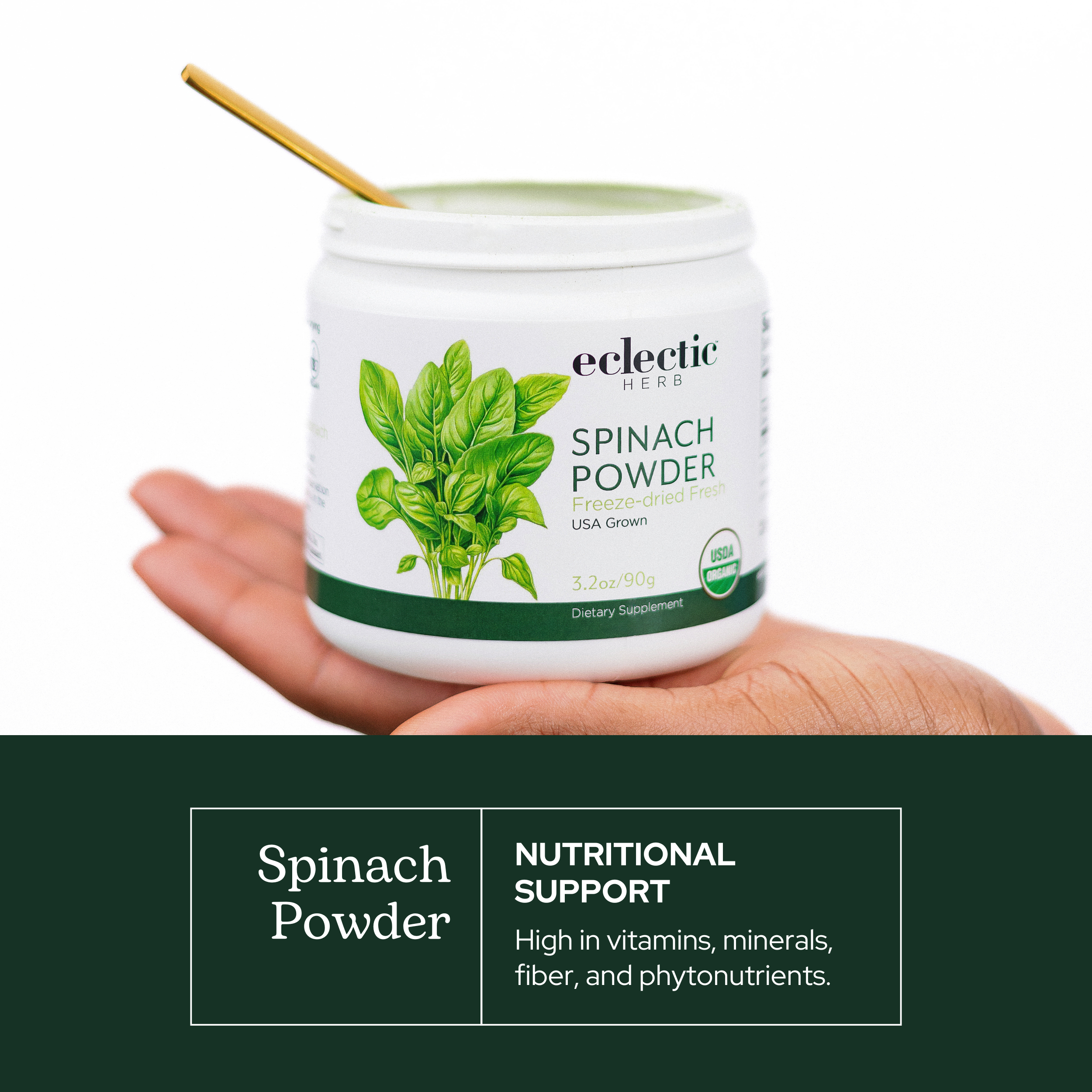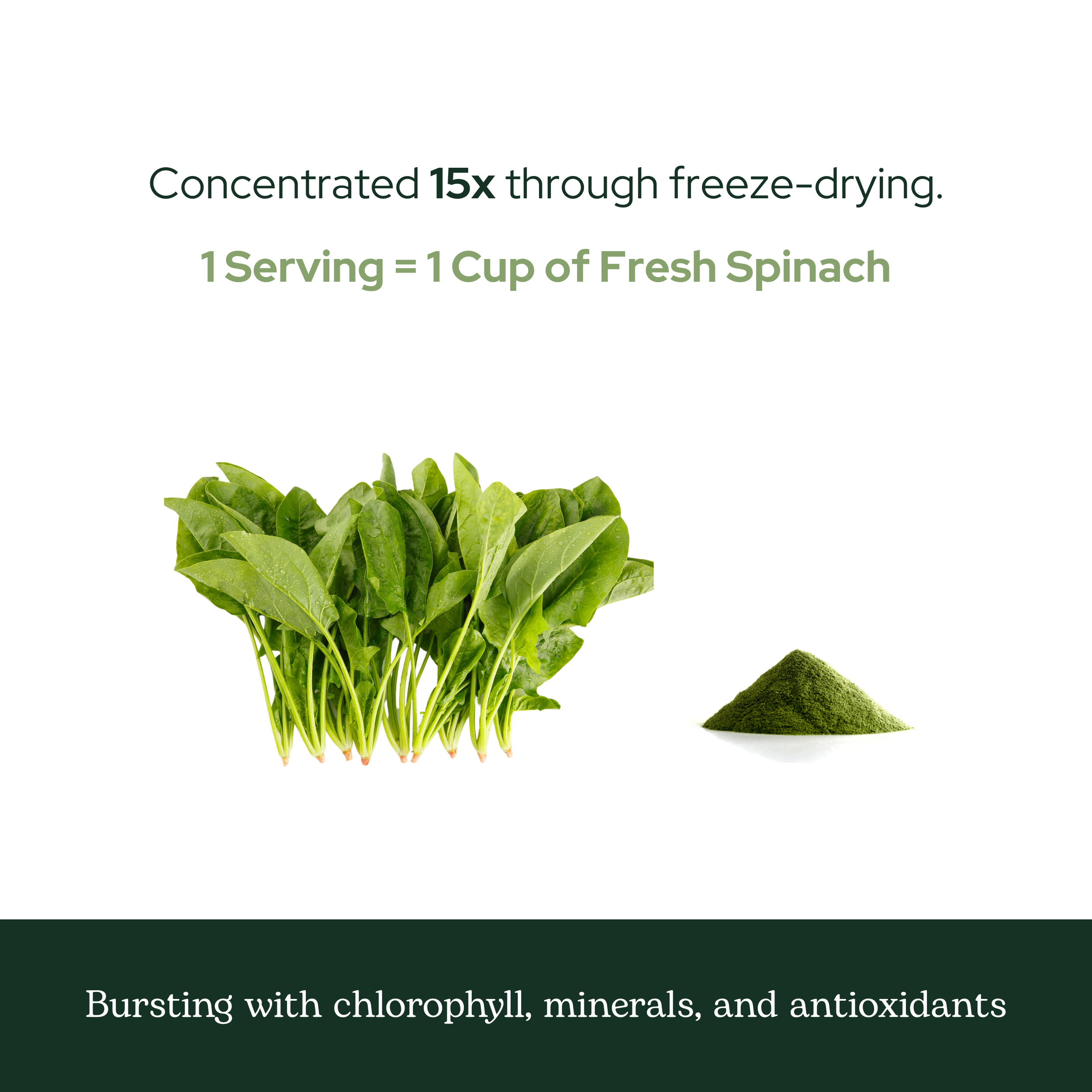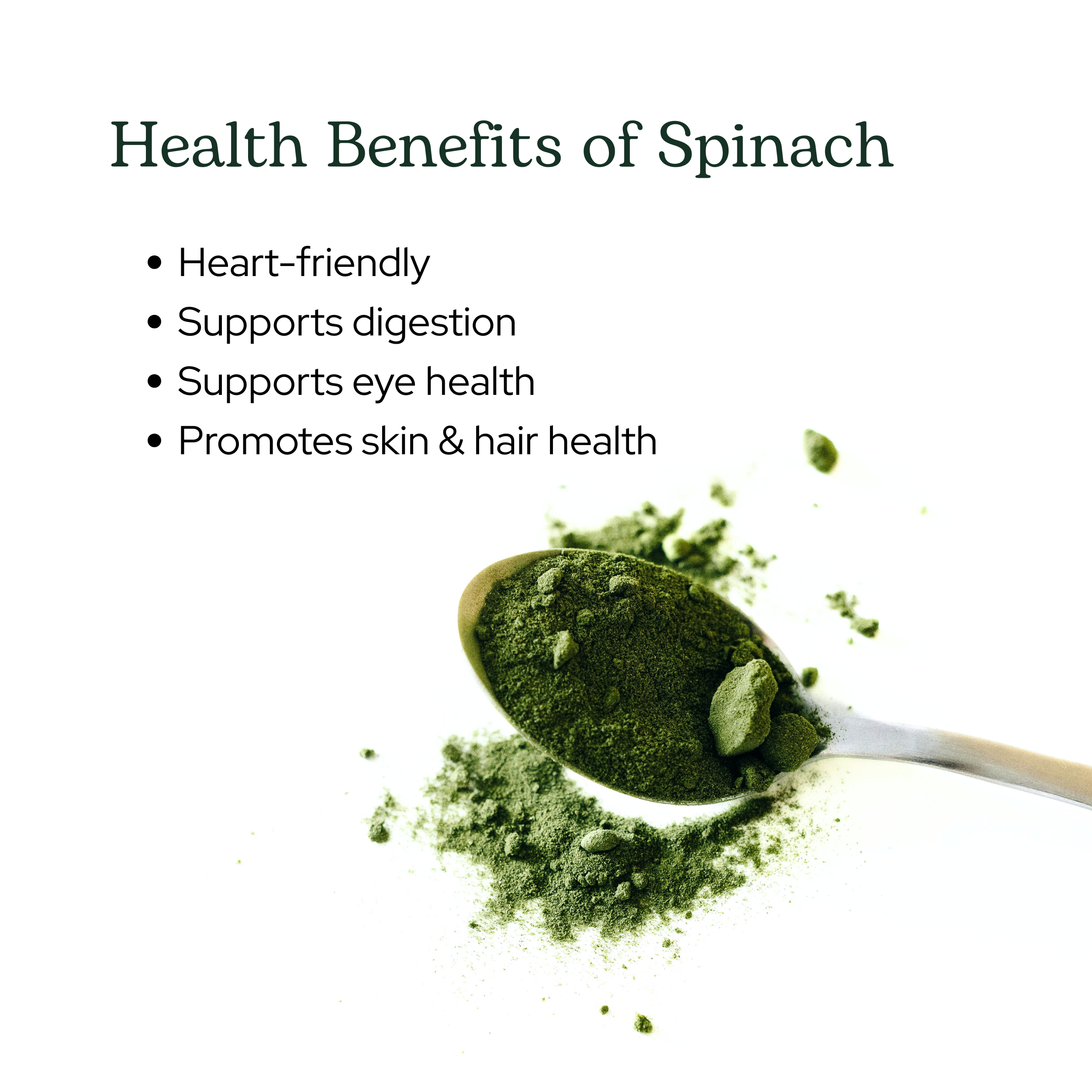 - Spinach is a super green that is full of healthy compounds. In a convenient powder form to easily add to food and beverages.