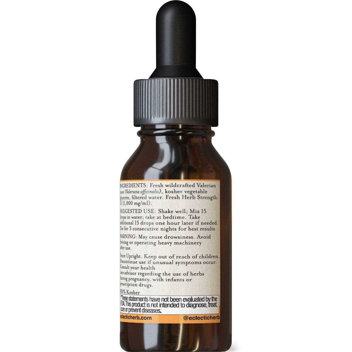 Ingredients: Wildcrafted fresh Valerian (Valeriana officinalis) root, Kosher vegetable glycerin, filtered water. Fresh herb strength 1:1 (1,000 mg/ml herb equivalency).