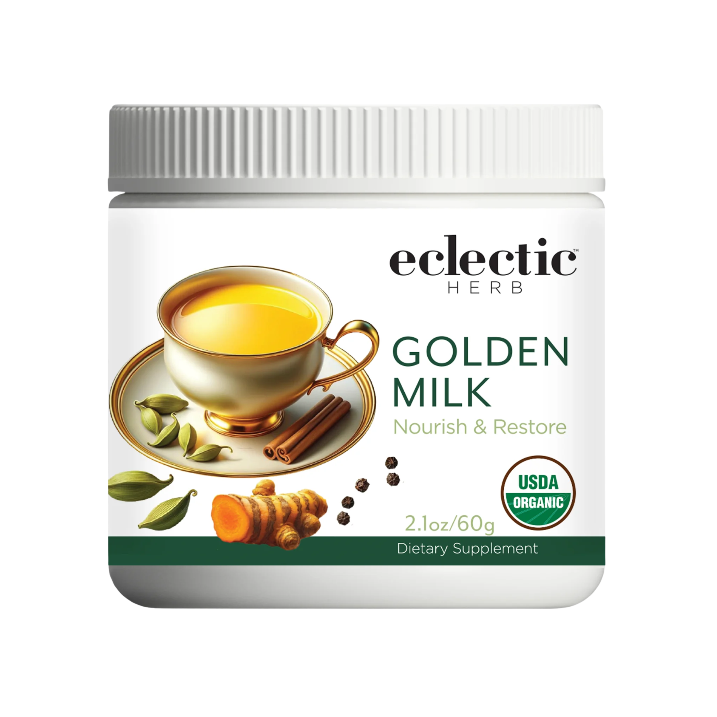 Ingredients: Organic Turmeric (Curcuma longa) rhizome, organic Ashwagandha (Withania somnifera) root, organic Ginger (Zingiber officinale) root, organic Cardamom (Elettaria cardamomum) pod, organic Black Peppercorns (Piper nigrum).