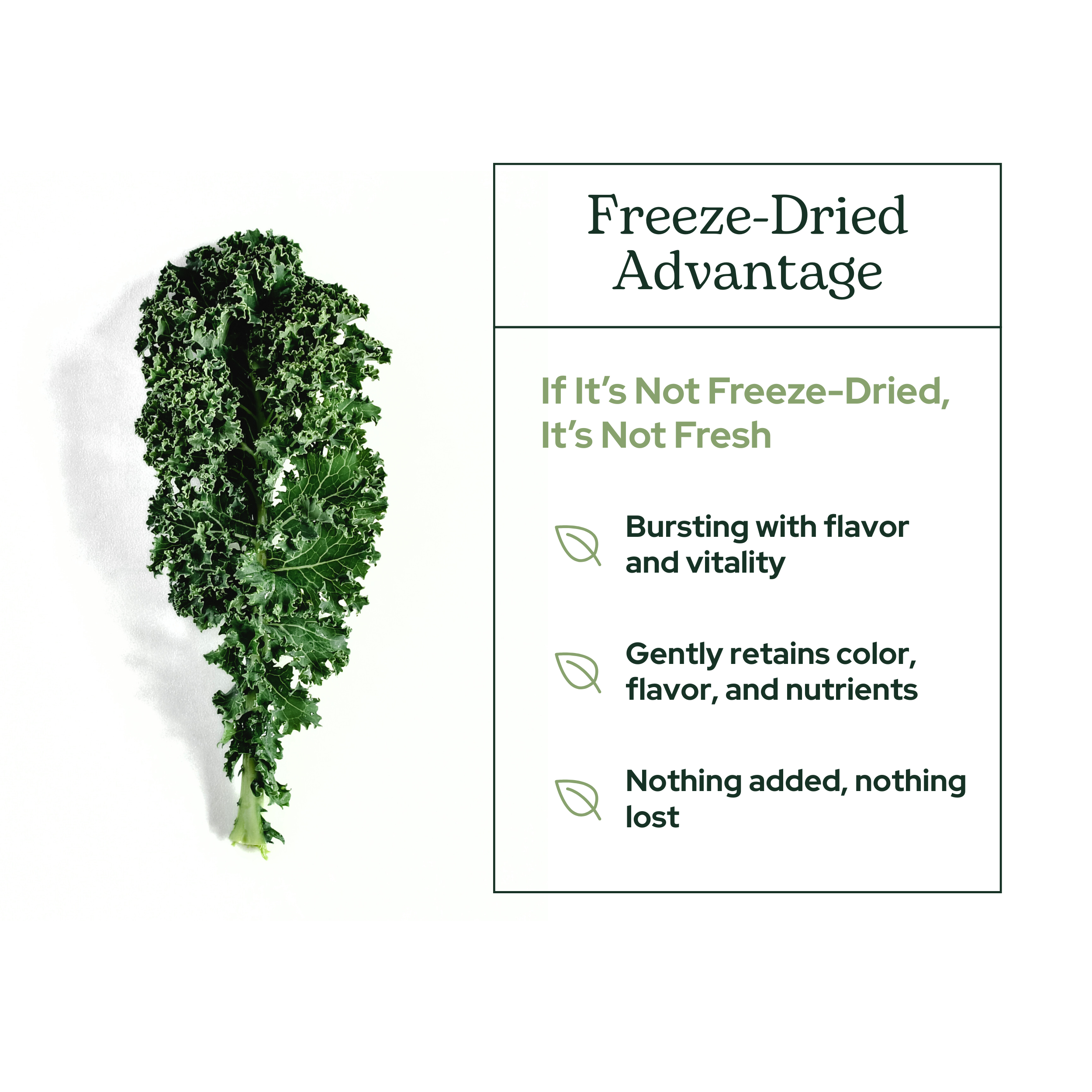 Unlike heat-dried powders that lose potency, our freeze-dried kale delivers the closest thing to fresh—from field to jar.