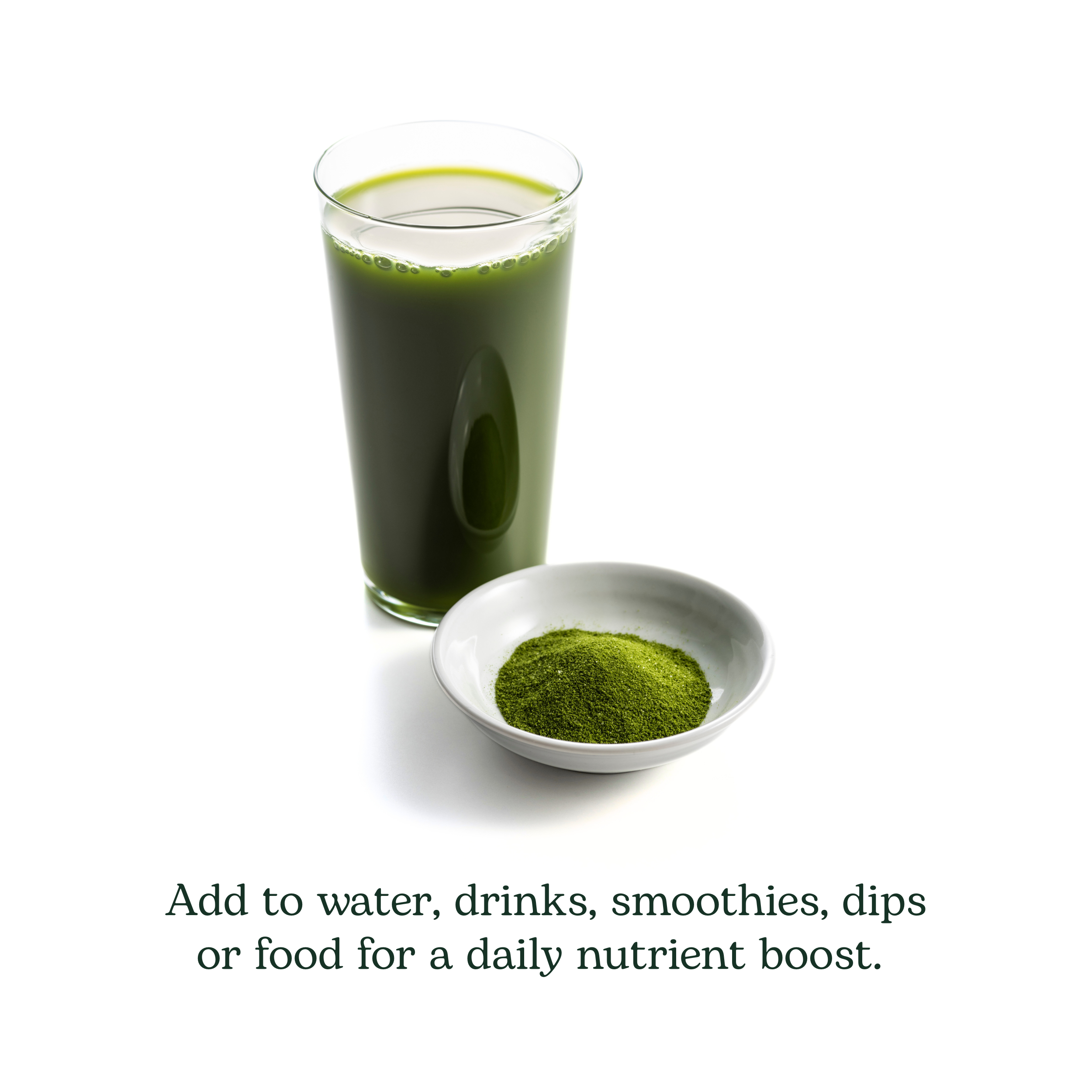 • Rich in vitamins A, C & K, chlorophyll, and plant-based antioxidants