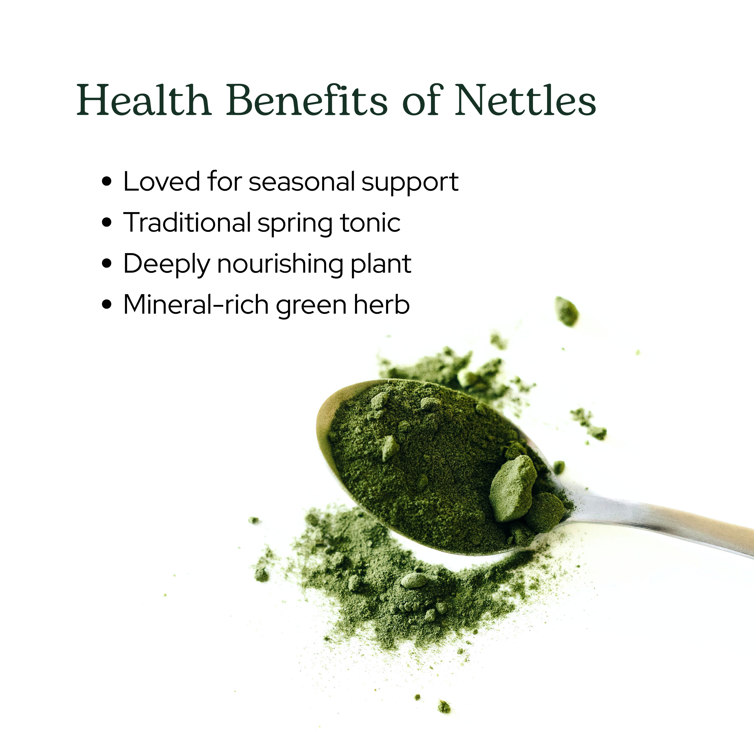 Our Nettle Leaf Powder is made from sustainably wildcrafted stinging nettles (Urtica dioica) harvested in the pristine wilds of Oregon. Known as one of the most mineral-rich herbs, nettles are traditionally used to nourish and fortify the body—especially during times of seasonal transitions or increased physical demands.